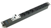 Блок розеток 19", 1U, 3 гнезда (Schuko)+4 гнезда, вход C13, 32A, черный, без кабеля, DANNMAN 7000730