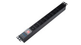 Блок розеток 19", 1U, 8 гнёзд (Schuko), вход С14, 10А, с LED выключателем, черный, без кабеля, DANNMAN 7000400