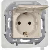 INSPIRIA Розетка 1-местная с заземлением с защитными шторками и крышкой 16А IP44 слоновая кость