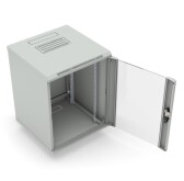 Шкаф настенный 19", 12U, 650x600х600мм, стеклянная дверь, серый, DANNMAN WXD1266GGY