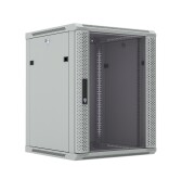 Шкаф настенный 19", 15U, 775x600х600мм, стеклянная дверь, серый, DANNMAN WXD1566GGY