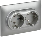 SKANDY Розетка 2-местная с заземлением без защитных шторок 16А в сборе SK-R08S серебряный IEK